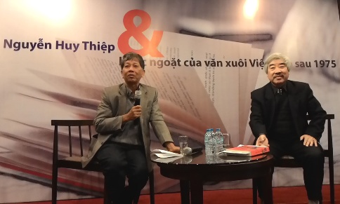| Nhà văn Nguyễn Huy Thiệp (trái) và nhà phê bình La Khắc Hòa |